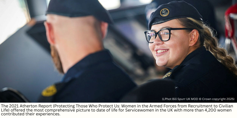 In July 2021, the Atherton Report [1]– officially titled “Protecting Those Who Protect Us: Women in the Armed Forces from Recruitment to Civilian Life” – was published by the House of Commons Defence Sub-Committee, chaired by MP Sarah Atherton. More than 4,200 women contributed their experiences, offering the most comprehensive picture to date of life for Servicewomen in the UK. The findings from the landmark inquiry were stark yet clear: many women felt a persistent lack of belonging in the Armed Forces, a sense that they had to work harder than their male counterparts to gain equal respect, and a dissatisfaction with ill-fitting uniforms, equipment, and living conditions.